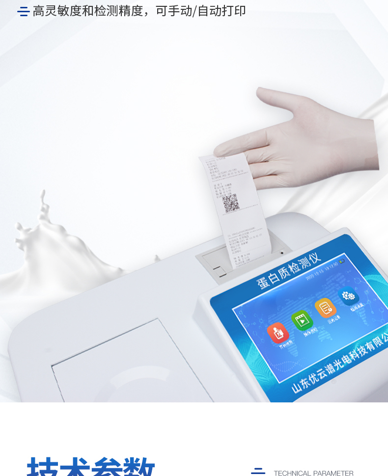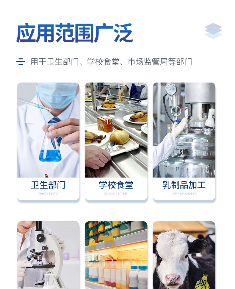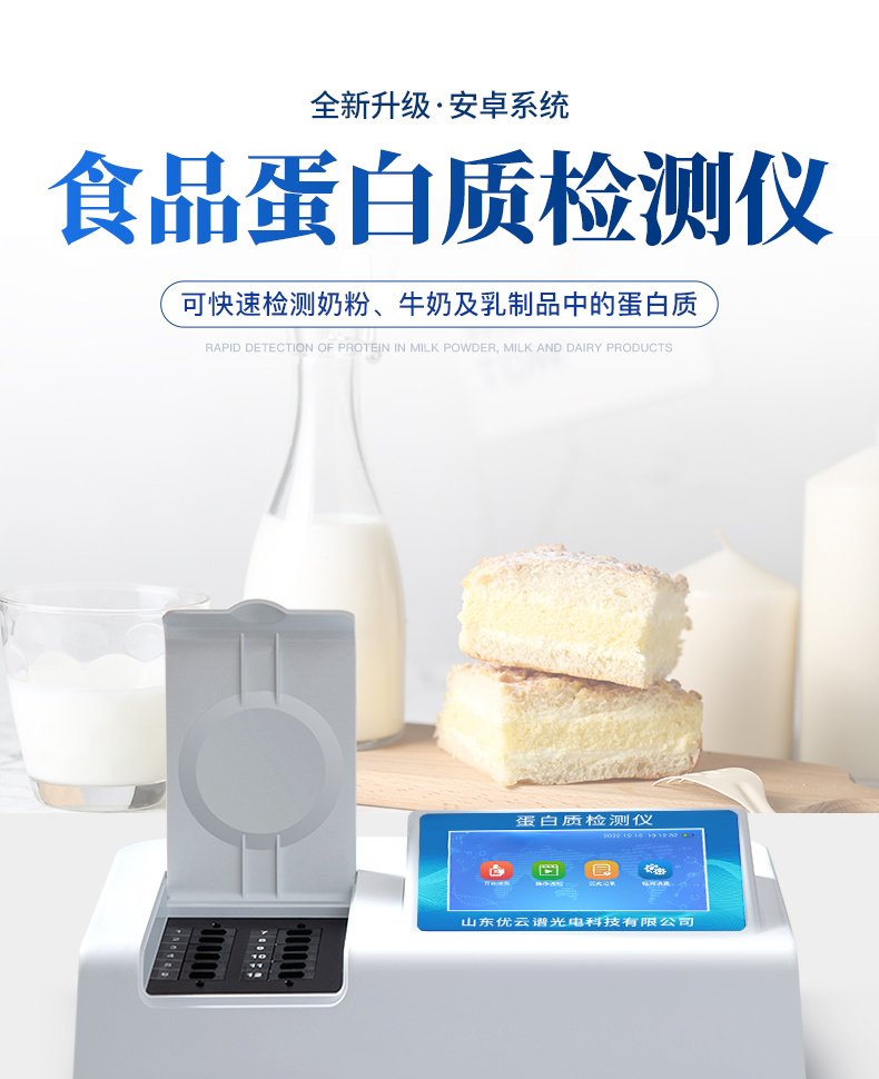 可快速檢測奶粉、牛奶及乳制品中的蛋白質,儀器預留其他項目檢測程序和端口,根據日后需求可方便的自主增加檢測項目。