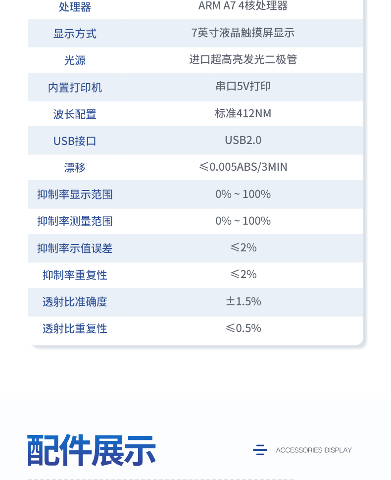 7、吸光度準確度:±2.0%