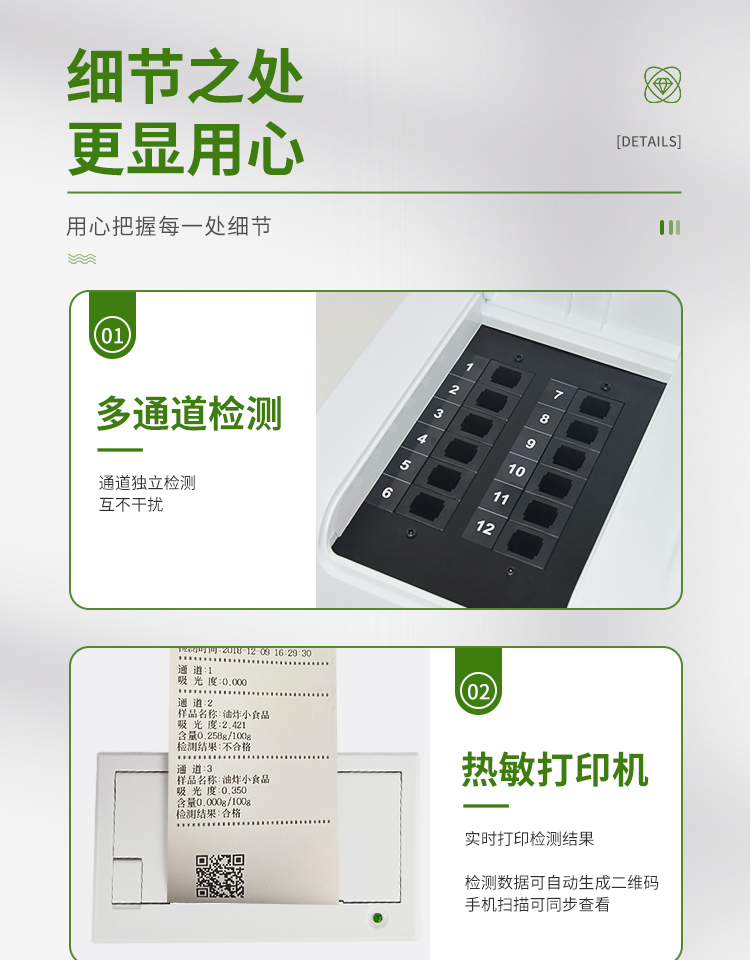 6、配備新一代嵌入式熱敏打印機(jī),可選擇手動打印或者自動打印,檢測完成可自動打印檢測報告和二維碼。