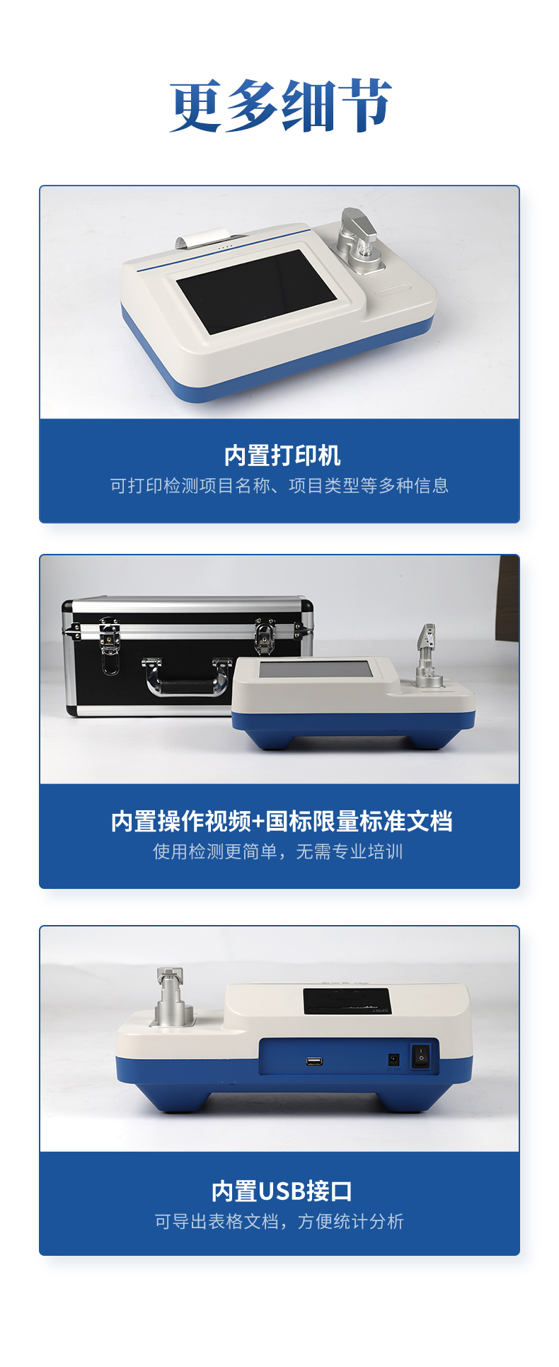4、儀器內置操作說明書文檔和操作視頻,使用檢測更簡單,無需專業(yè)培訓,適用于非專業(yè)5、人員現(xiàn)場檢測;