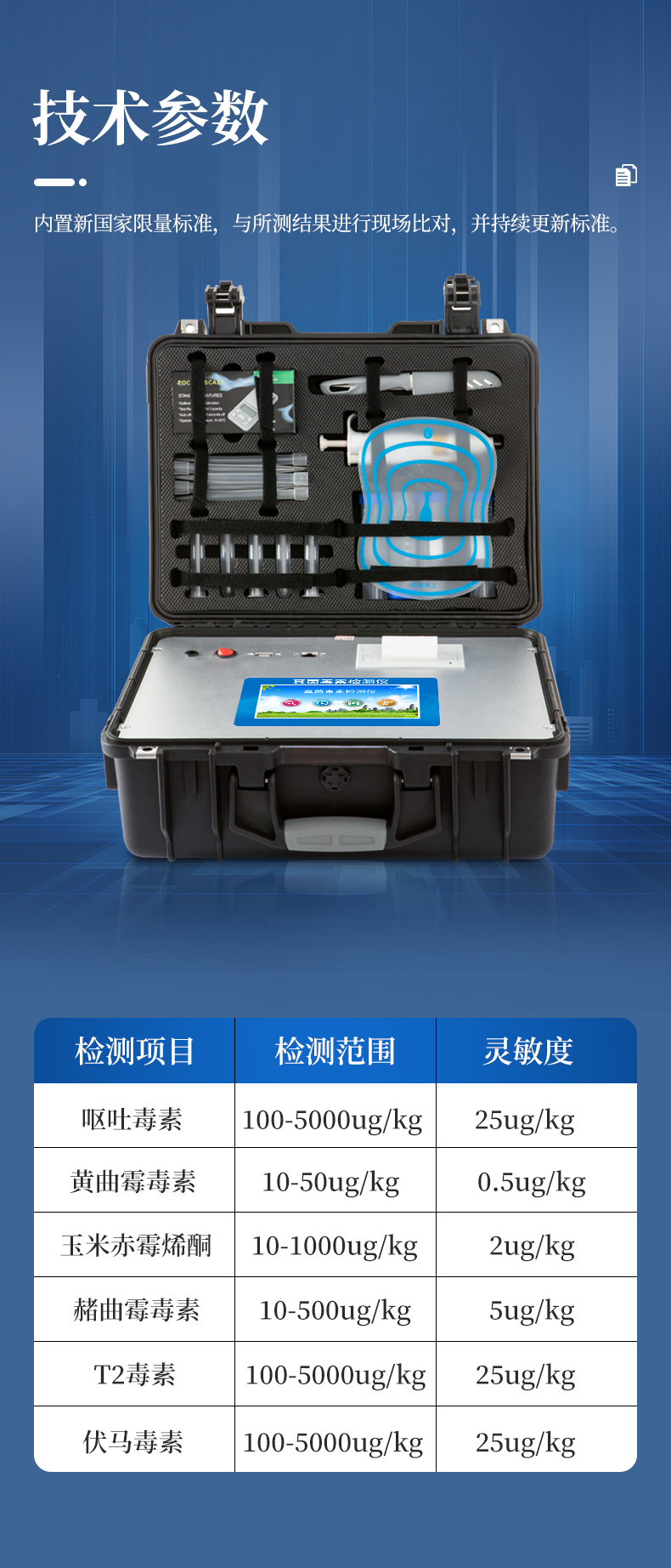 真菌毒素檢測(cè)儀應(yīng)用競(jìng)爭(zhēng)抑制免疫層析的技術(shù)原理,通過(guò)就是通過(guò)待檢測(cè)物與抗體結(jié)合的方法,分析待檢樣品中真菌毒素殘留。可快速檢測(cè)糧食、飼料、谷物、食用油、調(diào)味品中如玉米、大米、小麥、大麥、糙米、麩皮、稻谷、豆粕、米糠、飼料中的黃曲霉毒素B1、玉米赤霉烯酮、嘔吐毒素、T2毒素、赭曲霉毒素、伏馬毒素。