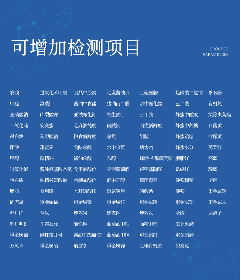 5、具有多個食品安全檢測項目,開放平臺,可以增減檢測項目。