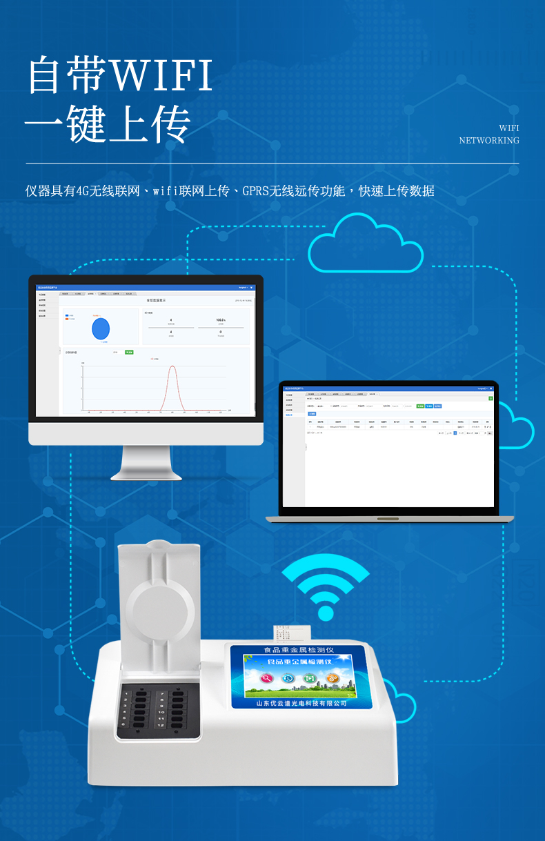 3、儀器具有4G無線聯(lián)網(wǎng)、wifi聯(lián)網(wǎng)上傳、GPRS無線遠傳功能,快速上傳數(shù)據(jù)。