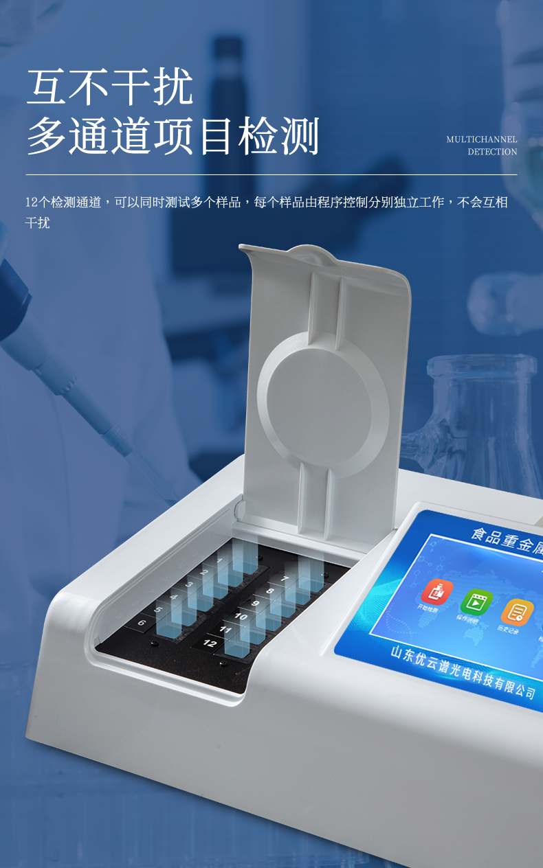8、檢測通道:12個檢測通道,可以同時測試多個樣品,每個樣品由程序控制分別獨立工作,不會互相干擾。