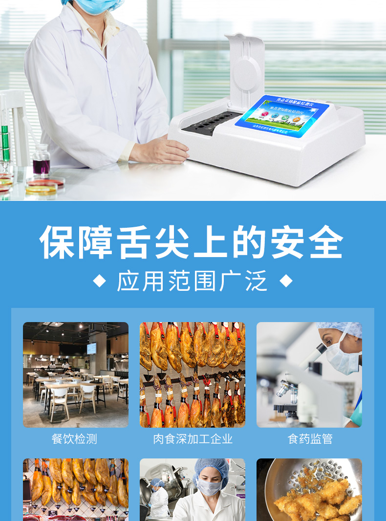 廣泛應用于餐飲檢測、食藥監局、衛生部門、肉制品食品深加工企業、商場超市、質量監督檢驗、工商管理、油炸食品生產基地、各大食品安全監測系統等單位使用。