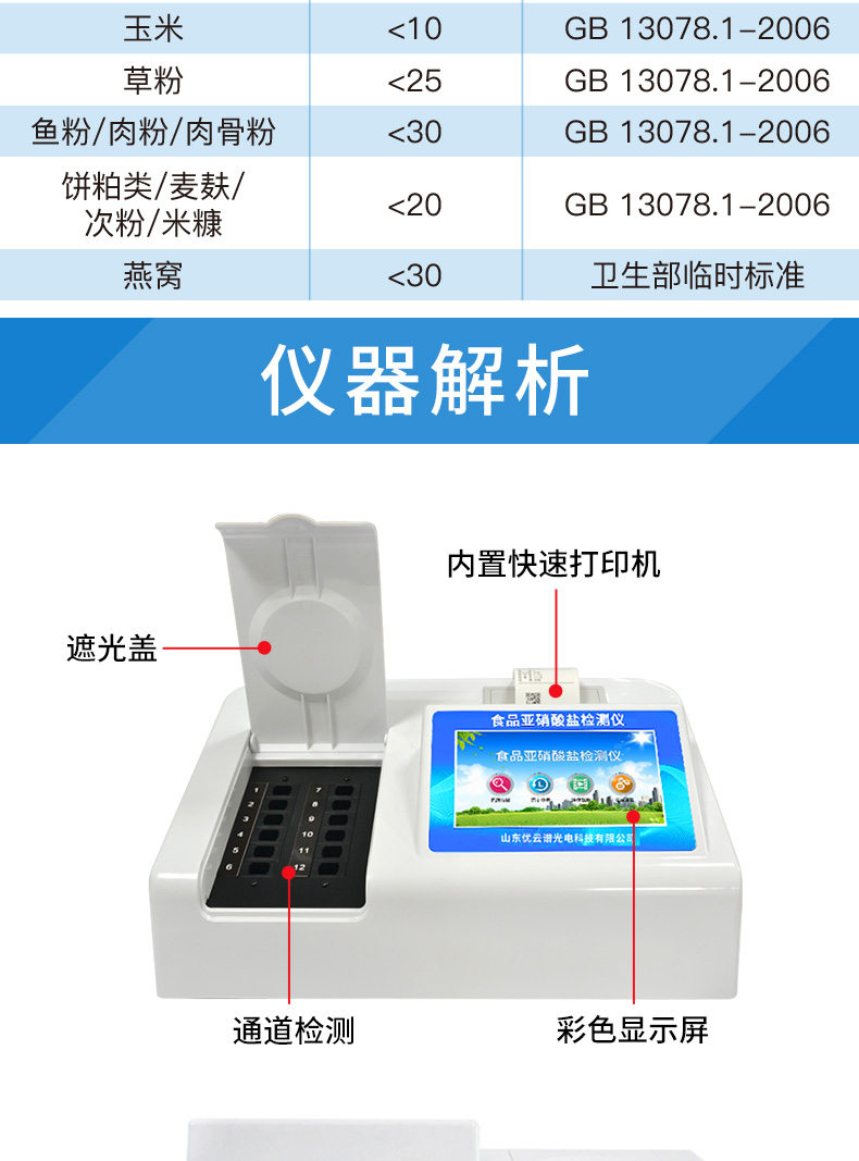 7、內置新國家限量標準,與所測結果進行現場比對,并持續更新標準。